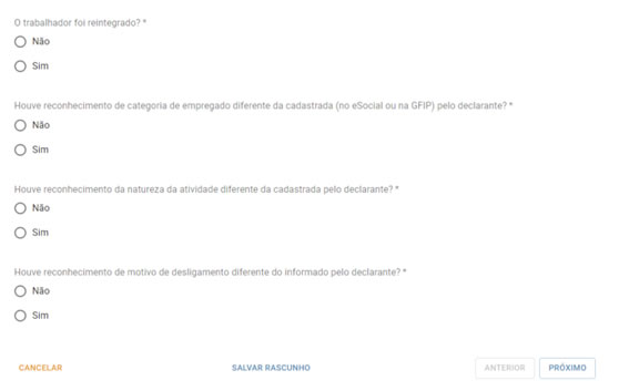 Ainda na tela de “Informações do contrato”, o usuário deve responder as perguntas exibidas na tela e clicar no botão “Próximo”: